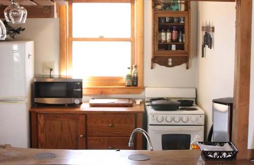 One of the original cottages built on Burr Oak Lake, Fisherman's Cottage sleeps up to 6 people comfortably in beds. The top level features a new bathroom with shower/tub, full kitchen, dining table, beautiful live-edge oak bar, and seating area. The top-level bedroom has a very comfortable full-size futon and twin bunk. Large enough for a couple to sleep well, or makes a great sleeping quarters for three kids.