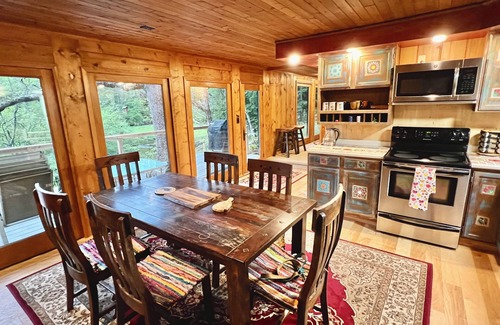 Immerse yourself in the artistic charm of our tranquil retreat nestled on the banks of a serene river, where the soothing sounds of nature and abundant wildlife await you. Located just minutes from downtown, yet secluded in its own private sanctuary, our oasis offers the perfect blend of convenience and serenity.