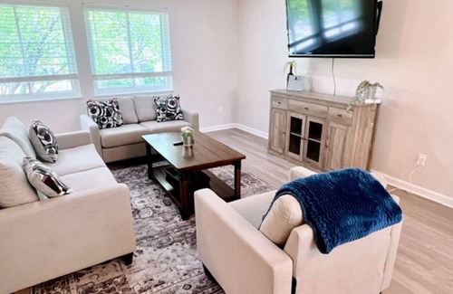 With one KING and 4 queen beds, this is the perfect space for teams and families traveling together. Centrally located to Downtown Fishers, you'll be minutes from the Nickel Plate trail, breweries, Target and the newly opened Fishers Event Center. Less than 30 minutes to downtown Indianapolis. This private back yard makes for a relaxing evening grilling on the back patio. Kick back and enjoy your stay!