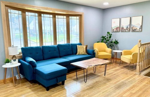 We recently completed a full renovation of the downstairs area! It now boasts a brand-new game room, a full bathroom, and two bedrooms, each furnished with two twin beds.