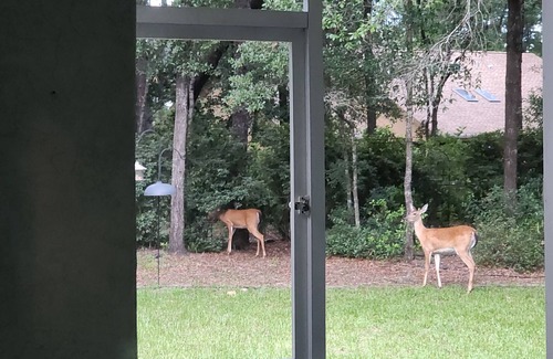 The home is on a wooded property and Florida is endemic to critters, insects, lizards, grasshoppers, palmetto bugs, spiders and snakes. Please keep doors and windows closed. We are diligent with our pest control. There will be no refunds if you have an encounter. On a happier note, deer, fox, rabbits, and hawks are regular visitors, and you may see them in the early morning.