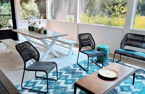 Located in the heart of Five Points, this home is filled with original art (including pieces from local artist Lou Kregel), limited edition prints and photos, a large collection of art, design, and cooking books, and tasteful modern and vintage furniture.