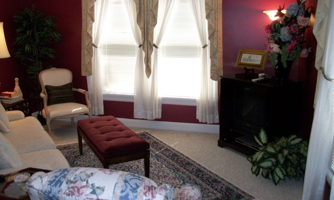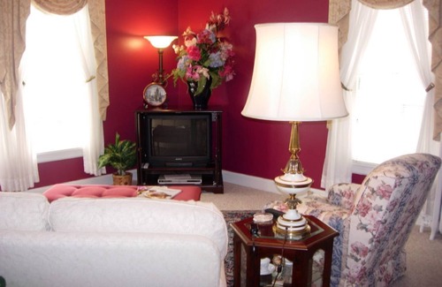 This five room suite offers lots of space to enjoy. Large comfortable living room with cable TV and two large windows that overlook the gardens below. A dining room with table, chairs, buffet is a place to dine of play cards. There is a fully equipped kitchen if you want to cook. The bedroom is designed for comfort and romanticism. Has a private bath with shower and tub. The back bedroom overlooks a wooded area with stream running through. There is private parking off street. Four short blockes through victorian neighborhood to downtown Lebanon. On the way you will pass a train station onwhich you can ride and dine. You will also pass the Chocolate Factory where you can very fine chocolate. So much to see and do in Lebanon and we offer a nice comfortable place to return to.