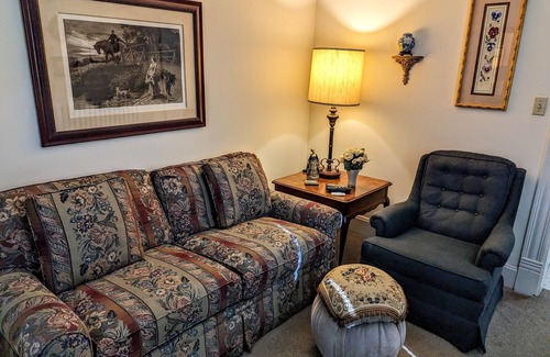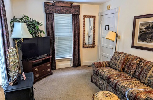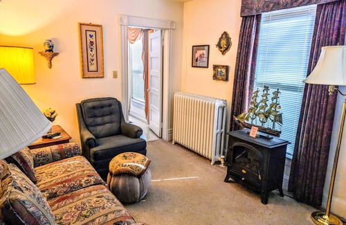Suite 2 has a wonderful view of yard and woods beyond. It is on the first floor for easy access. Comfortable living room and remodeled kitchen. The library room offers a desk for your computer and comfortable chairs for reading. The queen size bed is facing two large alcove windows overlooking the woods. The neighborhood is a friendly, quiet, Victorian setting. Only four short block to walk to downtown Lebanon. Where you will find lots of interesting shops, restaurants, train and museums. Extended stay lodging rates available per week or month.