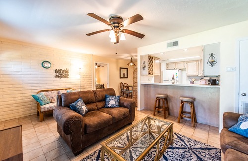 Beautifully decorated spacious 2 bedroom, 2 bath villa is waiting just for you. With only a 5-7 second walk to the pool and a 5-7 minute walk (less than a quarter mile) to the beach, El Cortez Villa 123 offers a family friendly environment perfect for a Winter Texan's or if you're planning a long weekend stay.