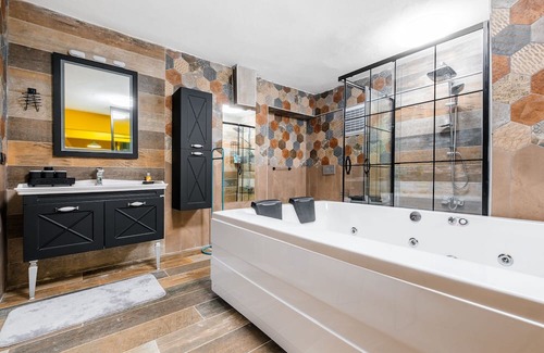 Flat w Jacuzzi and Backyard 6 min to Kadikoy Coast is located in Moda. Flat w Jacuzzi and Backyard 6 min to Kadikoy Coast provides accommodation, featuring Parking, Bedding/Linens, Wellness Facilities, among other amenities. This Apartment features Parking, Bedding/Linens, Wellness Facilities, to make your stay a comfortable one.