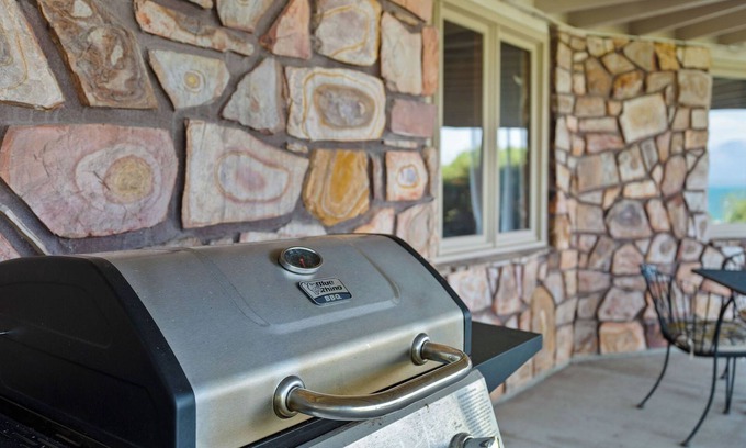 With free Wifi and parking, this 5-bedroom, 4 bath vacation home offers two flat-screen TV's, laundry facilities and a large fully equipped kitchen with a dishwasher and double oven. Our extensive deck overlooking the lake makes for a great outdoor living and dining space, complete with a family-sized grill and a gas fire pit.