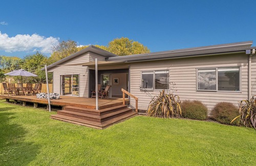 Inside, the well-equipped kitchen makes mealtimes a breeze, whether you're whipping up breakfast or prepping a feast. With three spacious bedrooms, the home comfortably sleeps up to seven guests across two queen beds and three singles. Two bathrooms, including a private ensuite in the main bedroom, ensure comfort and convenience for all.