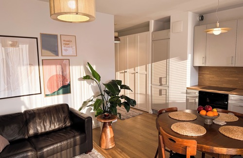 Warszawa is waiting for you at this 1-bedroom apartment with a garden. The space features a soothing king bed in the bedroom, a pleasant living room with a cozy sofa bed, and a bathroom with a bathtub and shower. Enjoyable amenities like a washing machine, iron, and WiFi are provided for guests. We're happy to assist with any questions while you stay at our apartment.