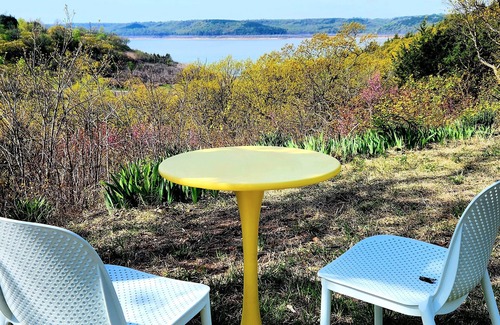 Tucked high in a canyon overlooking Tuttle Creek Lake, Bluff Cottage is the perfect place to unwind. Surrounded by trees, the house is private and tranquil. Have your morning coffee outside overlooking the lake while a lovely breeze blows, then walk down the hill to the lakeshore and dip your toes in the water, hunt for fossils (the shore is full of them!), or forage for driftwood.
