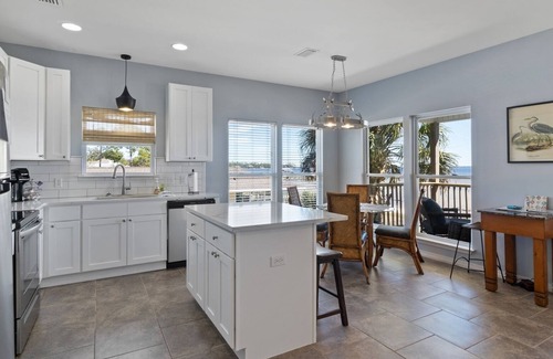 Kayaks are available for your enjoyment on Perdido Bay, Palmetto Creek, and Soldiers Creek. Kayakers often have close up dolphin encounters. The Flip Flop Bay House also has a private pool overlooking the bay and the views are stunning. This 4 bedroom 2 bath bay house will comfortably sleep 8-10 guests. Both the open concept living area and master bedroom have direct views of the bay. The large kitchen is fully stocked with seating for 2 at the bar and an additional 4 at the dining table. There`s an additional tall table in the living room with seating for 4. The house also includes a full sized washer & dryer for your convenience. There is a covered deck balcony where you can sit and watch the sunrise while enjoying your morning coffee or relax as you watch the gorgeous warm sunsets in the evening! Downstairs you will find a hammock, shower (for rinsing sand off), kayaks, and a bbq grill. Pet(Dog) fees are $100/dog up to a maximum of 3 dogs and will have to be charged separately after booking.