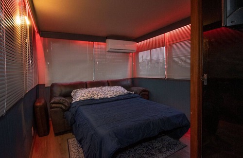 This memorable place is anything but ordinary. Recently renovated 2 bedroom houseboat. Sleeps up to 4 guests. Kitchenette, luxurious bathroom (for a boat), sunbathing deck, patio seating deck, sleek modern sleeping quarters. Set in a tropical tikki, waterfront resort setting, featuring live music, full service bar and restaurant. Walking distance to Fire Island ferries and main stree shopping, theater, eateries. You won't forget your time in this unique, romantic, lively, memorable place.
