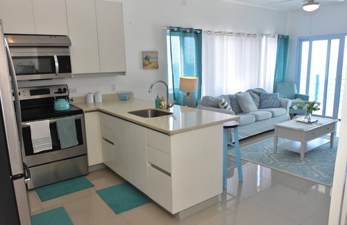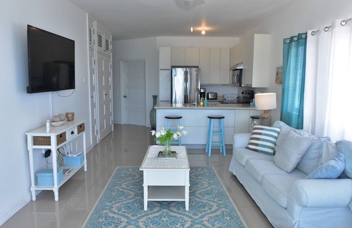 The Waves is a fully furnished ocean front, 2 bedroom, 1 bathroom penthouse luxury Condo located in Tower Isles and just 7 minutes from the hub in Ocho Rios. With stunning views on your top floor patio and from the pool, you will undoubtedly feel like you're Floating on Water.