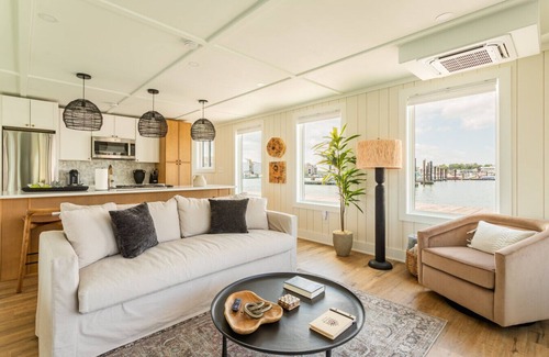 Welcome aboard FLOHOM 10—a modern coastal-inspired luxury houseboat designed to accommodate up to four guests comfortably. Nestled at the iconic Virginia Beach Fishing Center in historic Rudee Inlet, the celebrated birthplace of East Coast billfishing, this floating haven offers unparalleled panoramic views, stylish interiors, and a private rooftop deck perfect for capturing breathtaking sunrises and sunsets. Just steps away, immerse yourself in the vibrant pulse of downtown Virginia Beach.