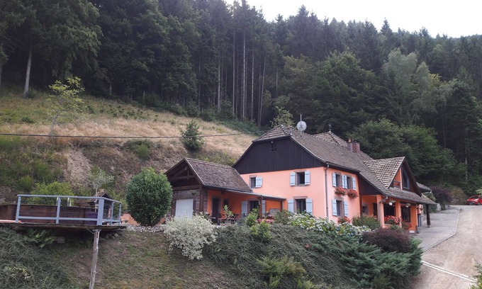 Cottage in a small village near the center of Alsace between Colmar and Strasbourg, near the forest, quiet with stunning views of the valley of Villé. Independent apartment, charming, with large terrace, very well equipped, in a former eighteenth century farm and surrounding countryside. Presence horses on the property; small pool, calm and quiet. Many outdoor activities: hiking, adventure park, aquatic center ...