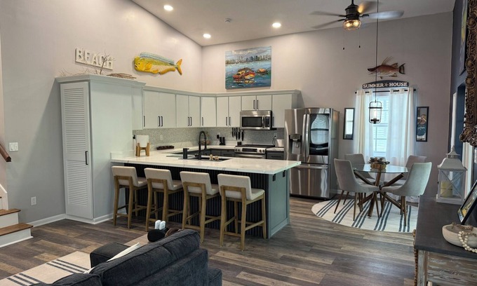 Carribean Paradise is a beautiful 3 bedroom 3 bathroom house in a quiet, beautiful neighborhood. Large corner lot with boat ramp, dock and plenty of parking. Upstairs there is a king in the master and queen in 2nd room. Coming soon! Sectional couch in main living area with pullout queen. Full downstairs apartment with pull-out sofa queen , full bath and separate kitchen. This house has an open living and dining room area, new stainless steel appliances in the kitchen and a screened in back porch. Large TVs in all living spaces and bedrooms, wireless internet, wireless printer, full size washer/dryer. Huge backyard with lots of comfortable seating for relaxing and eating. The dock features fresh water, electricity and two fish cleaning tables. Best part is the deep water flow through canal with less than a minute travel time to the Atlantic or the Gulf. Just a short boat ride to the great deep sea fishing or to the famous Looe Key coral reef for some of the best snorkeling/diving in North America. Sightseeing and shopping in Key West is just 24 miles away.