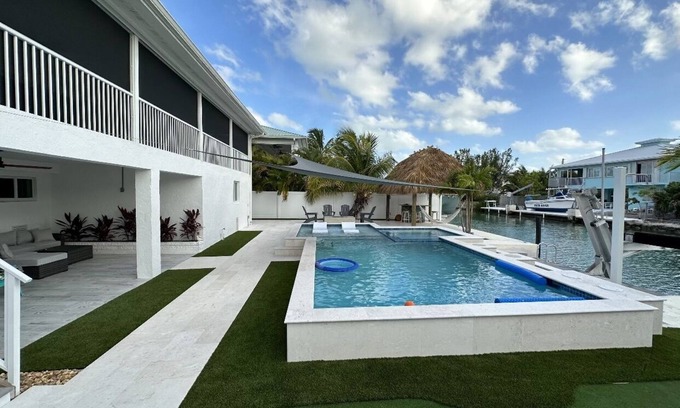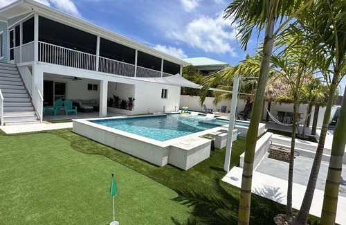 Looking for the ultimate vacation experience? Our vacation home has everything you need to relax and have fun. We are located on a beautiful flow through canal with dockage to fit a 26’ boat. Take a 5 minute boat ride to open water or explore the mangroves by kayak. The fish cleaning station is perfect for your fresh catch. Enjoy your stay with the heated pool, hot tub, tiki hut, putting green, and fire pit. We are located between Key West and Marathon, enjoy the best of both! 28 day minimum stay, must start at the beginning of the month. The boat lift is not available at this time.