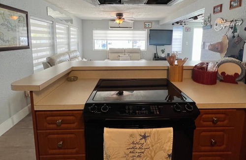 Florida Keys Waterfront Fish Camp Cottage! 2/2. Recently renovated interior with a charming, slightly rustic exterior, this property offers a prime location close to everything you need. Enjoy convenient access to movie theaters, Harry Harris Park, Founder's Park, boat ramps, popular restaurants, grocery stores, and even a nearby hospital. The 40-foot dock on an oceanside canal provides direct access to prime fishing grounds and local sandbars, making it perfect for boating enthusiasts. A BBQ grill and a commercial ice machine add extra convenience, while the insulated porch offers a comfortable spot to unwind each afternoon. A spiral staircase leads to a spacious sundeck for enjoying scenic views. Bring your boat (36 feet or under) and make the most of this idyllic setting. Repeat seasonal customers are welcome, with special rates available.