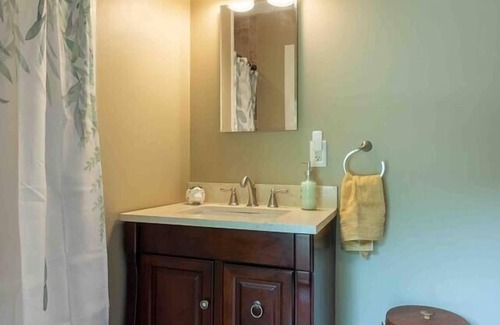 Fly Creek Manor has 4 bedrooms and 2 bathrooms. The master bedroom is downstairs and has a king bed. The remaining 3 bedrooms are upstairs, 2 have queen beds and 1 has two full beds as well as a bean bag that converts to a spare king sized bed (CourdaRoy’s brand). An air mattress can also be provided if this is more comfortable to use. With all these beds including the spare CordaRoy bed or air mattress the house comfortably fits 12. There is one bathroom upstairs and one downstairs. Both has walk in showers, no tubs. There is a dedicated work space with a desk and there is Spectrum WiFi provided. The living room has 2 couches that will each seat 3 people and a TV set up for streaming such as Netflix, Disney Plus and Amazon Video. There is a full kitchen with everything you need to cook during your stay. There is a lovely large washer and dryer as well to use! Outside is a private yard with a charcoal BBQ and a fire pit. Fly Creek Manor is so cute and cozy you won’t want to leave! We have left all the charm that makes it an 1800s home but still providing all the amenities needed to have a wonderful and cozy and relaxing stay!