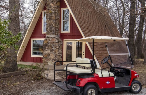 Fly-In or drive-in to enjoy this delightful Grand Lake home on popular Monkey Island. Rent a Golf Cart to be delivered to the Airport or the Home. This captivating home is located just 900 feet from the end of runway 35 of Grand Lake Regional where you can enjoy the landing and departing airplanes. Enjoy all of Monkey Islands activities and restaurants, including a 27-hole championship golf course, boat and jet ski rentals to enjoy the 1800 miles of Grand Lakes dramatic shoreline, parasailing, horseback riding, winery, and much more! All of Monkey Island is accessible by Golf Cart, we recommend renting a Golf Cart with "Monkey Around Golf Cart Rentals" (monkeyislandgolfcartrentals.com / 918-801-3795), they will deliver the golf cart to the Airport for your arrival, or the home if you drive in. You'll immediately fall in love with the aviation themed lake home with a large open living area, real stone fireplace and updated rustic kitchen. You'll have all the comforts of home, including a washer and dryer, coffee bar, double oven and dishwasher in the fully equipped kitchen. The landscaped back patio offers a propane grill, outdoor stone oven, firepit, and plenty of outdoor seating. The Master Bedroom has a king bed with walk in closet, while the upstairs bedroom features a queen bed. The open loft is great for kids with 2 convertible single beds and a Wii gaming system. All rooms have a flat screen smart TV for your enjoyment. For additional room there is a convertible couch as well. After a fun day on the island, kick back by a fire on the back patio, or watch the ongoing airshow from the front seating area. Check Six Getaways is geared towards the flying family or friends but you can certainly drive in and enjoy as well!