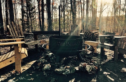 The "Folk Cabin" is a secluded 2 Bedroom Modern Cabin with 2 Full Bathrooms located just beyond the Ozark Folk Center. Peaceful wooded setting located at the end of the road yet literally a couple of minutes from downtown. Location, Location, Location! Lost of wildlife in the area and we most always see deer from the front porch swing. The Rock fireplace (electric) in the living room sets the mood for your getaway in the mountains and puts off lots of heat with the heat feature turned on. The living room features an electric recliner as well as a reclining loveseat and sofa with recliners (talk about comfort). The master features a king bed and full bathroom and the second bedroom contains both a queen and full bed. The second full bath is located in the hall. There is a fire area outside with chairs to relax and wood for roasting marshmallows and smores. WIFI and cable TV are also provided as well as a fully stocked kitchen. Full size washer and dryer as well. We've also added a custom firepit with a swinging "cowboy cooker" grill grate for cooking!!!!