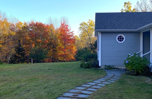 The yard is private with open meadows, apple trees, dragonflies, garden paths and extensive perennial gardens to enjoy. The southwest corner provides hammocks perched in the whispering ash and poplar forest, with views out to the south ridge of Cadillac Mountain.