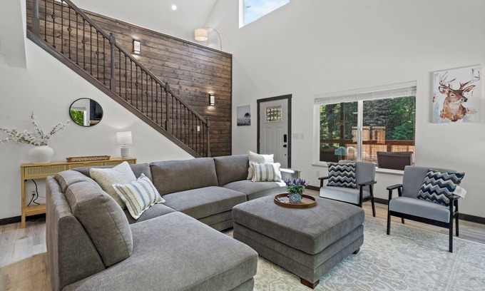 Escape to our tranquil cabin near Mt. Rainier National Park, featuring a private hot tub, chef’s kitchen, and thoughtful touches throughout. Ideal for family retreats or fun getaways with friends, our cabin offers the perfect ambiance.