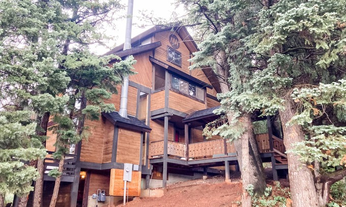 This secluded mountain home is in the perfect location surrounded by trailheads for hiking, biking, and adventuring. It is not far from the main road and is tucked away into beautiful tall pines.