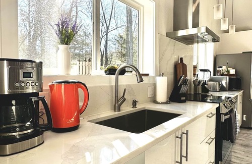 I welcome all in my new unique, modern home, nestled in the woods! Designed to create an unforgettable memory. You will forget about everything and just be!