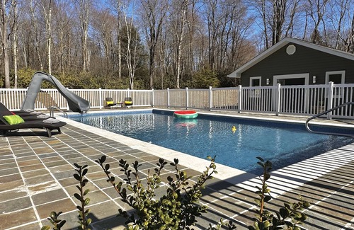 There is over 4000sf. back deck with Hot Tub, grill and private 20' x 40' x 3' to 7' in depth swimming pool -NOT HEATED!!!- (open seasonalI for You to enjoy from June – October ) with lounge chairs. You can relax in outdoor, There is also fire pit off . Kids can enjoy large area of greenery around!