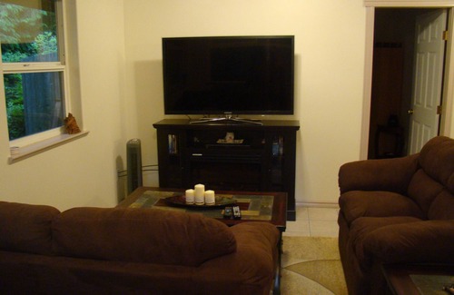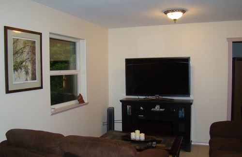 This beautiful two bedroom cabin sleeps up to four people, inside you will find two comfortable bedrooms with queen beds, a relaxing living area with couches, an electric fireplace a 52' led flat screen TV with a dvd player, a fully equipped kitchen Bathroom with tub and shower,and a washer and dryer.Outdoor features include a private driveway split level decks with a Barrel Sauna out door seating and a BBQ to cook up delicious meals.