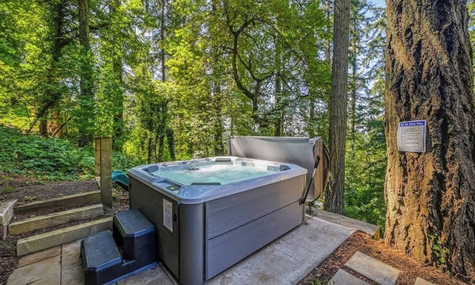 Brand new hot tub (heated to 102°) surrounded by forest