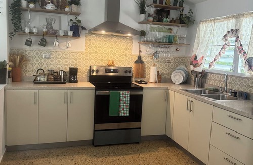 Make yourself at home in this charming 2-bedroom Villalba retreat. With 2 queen beds, a washing machine, WiFi, AC, hair dryer, and iron, this house has everything you need for a comfortable stay. Forget your worries in this spacious and serene place. A complete house for you and your family with a big yard, to run, play and enjoy natures best greens. Bring your pets and have fun in this beautiful bohemian style space. Very close to the main road PR 150, famous Toa Vaca lake , rivers and Restaurants.