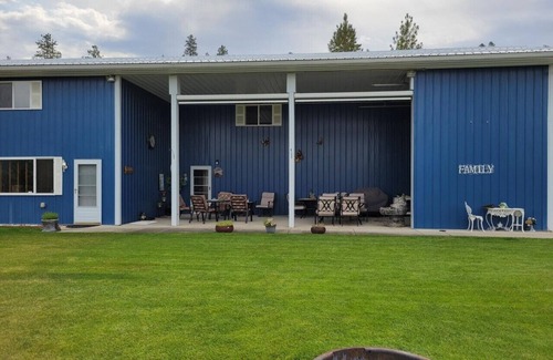 Relax with the whole family at this peaceful place to stay in the beautiful mountains of Fort Spokane only minutes from the Spokane River and Lake Roosevelt. Spacious home with patio. Enjoy this home to relax, fish, hunt or spend time on the water. Five minutes from public boat launch with large parking area. Five minutes from public swimming area and park with picnic tables on Spokane River. The outdoor patio includes lights, tables, bbq, Blackstone and motorized shades for cooler afternoons still showing a view. There are stadium lights in the front yard for nightly activities. Property also includes two full RV hookups with power, water and sewer for $50/night extra. Property also has a boat shed for two boats.