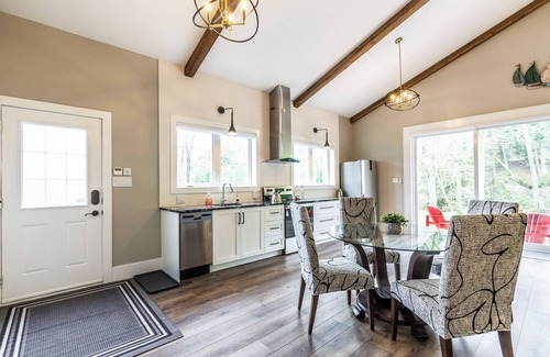This guesthouse is situated on the same property as the owners property residence. The guesthouse has an open concept with a king bed, fully equipped kitchen, walk in shower, laundry. A smart TV to watch your favorite movies. Beautiful view out of the large patio door. Private patio with BBQ. Fire pit to enjoy, beautiful gardens and nature. Short walk to beach on Lake Erie. Short drive to Turkey Point and Long Point beaches. Many mountain bike trails, ziplining, wineries, bird conservatory, and bird watching areas all close by. Door code will be given before arrival. Can arrive at 3pm or anytime after.