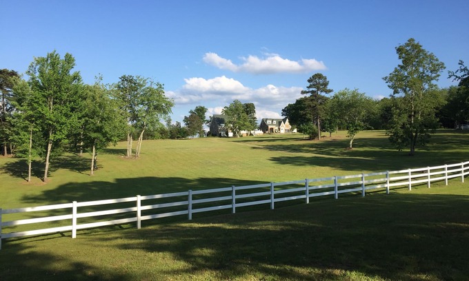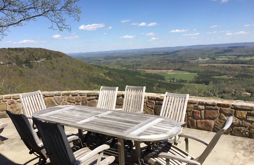 Follow the winding road off Lookout Mountain Parkway to the secluded meadow, fishing pond and mountain oaks and you will discover one of the most serene spots in Northwest Georgia. Enjoy panoramic sunrises and serene forty mile views from the back of this two story rock home. The house has a large great room that is centered with a large rock fireplace. It has high ceilings with a definite elegant lodge feel. Enjoy the fully equipped kitchen with custom concrete countertops. The downstairs bedroom has a great view of the 20 acres of the well manicured meadow. The two upstairs bedrooms have amazing views of the valley below. A trundle bed offers additional sleeping accommodation between the two upstairs bedrooms.