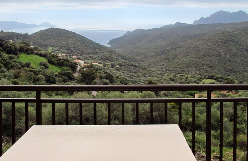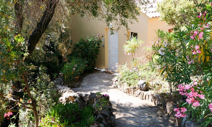 Small, cosy residence "Les Asphodeles", surrounded by trees. 6 houses in the residence. 18 apartments in the residence. 700 m from the centre of Partinello, 14 km from the centre of Porto, 150 km from the centre of Bastia, in a sunny, elevated position on a slope, 4 km from the sea, in the countryside. For shared use: terraced garden (fenced) with 2'000 m2, plants and trees, natural garden. Arbour, garden furniture. In the complex: internet access. Parking on the premises. Supermarket 14 km, bus stop 1 km, pebble beach "Caspiu" 4 km. Please note: car recommended. Residence with electric gates. The photograph shows a typical example.