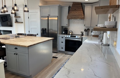 Inside you will be wow-ed by how beautiful the finishing are throughout. From the renovated kitchen with enormous island/table to the comfy sectional couch and the well done cutome tile bathrooms. This home is prefect for your stay and will help make memories to last a lifetime. A King bedroom with ensuite bath, a bunk bed room and a 3rd bedroom with a double bed makes this 3 bdrm/2 ba home very versatile when it comes to bedding configuration.