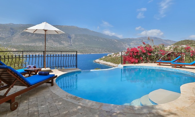 Best-rates for the Kas villa starts from $366 per night with includes Parking, Security/Safety, Bedding/Linens, Entertainment, Pool, Oceanfront, Wellness Facilities, Fireplace/Heating, Barbecue/Outdoor Cooking, Hot Tub, Private Pool, Balcony/Terrace, Child Friendly, Internet, Kitchen, Air Conditioner, TV, View, Ocean View, Laundry StayAndPlay offers fully equipped golf villas, golf hotels, golf resorts, luxury golf cabins, and exclusive golf retreats, making it easier than ever to find your perfect golf escape — ideal for families, peaceful getaways, or pet-friendly retreats with the whole crew.