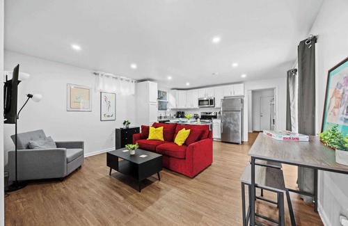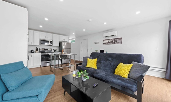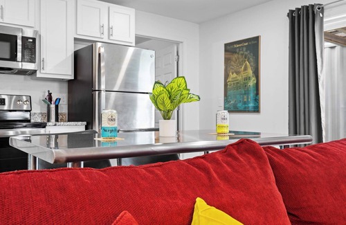 Stay in a unique eco-friendly container in Lou feat. 4 pvt 1-bedroom units! Perfect for families, couples, or groups traveling together. Each unit offers smart-lock entry, Wi-Fi, a cozy living room, Roku TV, and a fully equipped kitchen. In-unit laundry makes longer stays easy, while flexible sleeping arrangements provide comfort for all. Relax in the shared outdoor spaces or walk to NuLu’s breweries, bourbons, cafés, and art galleries. Enjoy the city’s most vibrant neighborhood!