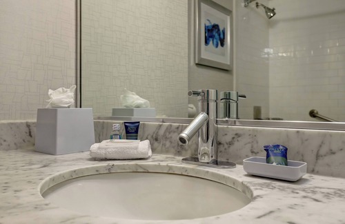 Recreational amenities at the hotel include an indoor pool and a 24-hour fitness center.