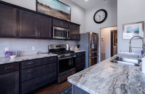 Spacious, peaceful home with three bedrooms. (two king beds and a queen) The open floor plan of this clean modern home is wonderful for enjoying the company of friends and family. The home is in a safe family oriented neighborhood.