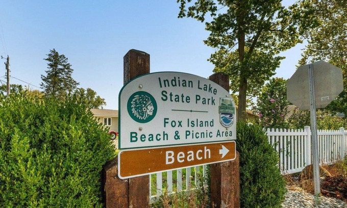 Located just steps away from the Fox Island State Park, you'll have easy access to the beach, perfect for sunbathing, swimming, and building sandcastles. The nearby playground is a hit with kids, providing endless hours of fun. Enjoy picturesque lake views right from the cottage, with spectacular sunsets and a peaceful atmosphere.