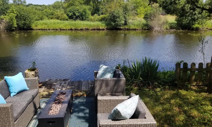 Located around the corner from Pistakee and Nippersink Lakes awaits a piece of tranquility. Our lake house sits on 3 adjoining properties along Nippersink Channel on the Chain O' Lakes in Northern Illinois. The property is semi-wooded on a main road near plenty of shopping. Fish merely feet from the back door. Wake up and enjoy a cup of coffee while watching deer drink from the water. The channel is relatively low traffic, inviting geese, ducks, turtles, cranes, and more. The lake house has 2 bedrooms and 1 luxury bathroom. Enjoy a walk in custom shower w/ bench and body sprayers. The master bedroom has a king size bed with a 42" flat screen TV. There is drawer and hanging space available. The second bedroom has hanging space. There is a twin bed and a set of bunk beds (twin on top, full on bottom). 32" TV equipt with a firestick which has Netflix, Amazon, and Disney +.The living room has a large sectional which can sleep 2, along with a 47" TV, complete with surround sound, DVD player, PS3, and Nintendo WII. Cook a meal in our fully functional kitchen with coffee station, toaster oven, blender, etc. Condiments, coffee, spices provided. Dining space looks out to the water and can seat 6 people. Washer and dryer available with laundry supplies. Shoot a game of pool or darts in the garage. All we ask is that you respect our belongings as this was our home until a family emergency and we have left the kitchen, bathroom, and most of everything fully stocked and ready to go! Both adjoining lots are very large, complete with a fire pit, fire table, and charcoal grill. Popular area for ice fishing and snow mobiles in winter. Code provided to electronic lock. Please note, you are renting a house that is by woods and water, although we treat for bugs, it is impossible to prevent them 100%. My brother does have his boat docked on a side lot and may access it from the side lot. I have a lot of inquires about swimming and having boats/water accessories. We do not offer anything to use on the water, please understand that it is a huge insurance liability issue! There are rentals right around the corner from us and trips offered for tubing, boating, canoeing, and kayaking. Just let me know and I can provide the info! Please read entire listing notes and house rules prior to booking!