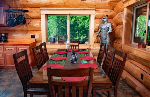 3000 square feet of rustic bliss! Will consider winter season. The property is perfect for small weddings and family reunions. 5 bedrooms, 3 baths, on three levels, in the heart of the White Mountains. Please call for a quote any time on the calendar. This is a standout property that you don't see in the Northeast that often. You will be mystified by the ancient form of Scandanavian craftmanship. Tastfully decorated, surrounded by giant logs, in a perfect spot for vacationers. The property is 6 minutes to Bretton Woods and the world famous Mount Washington Hotel. 12 minutes to Cannon Mt. and Echo Lake Beach. 30 minutes to Loon. Overall, you are within a half hour from Santa's Village, downtown Littleton, Storyland, Attitash, North Conway Shopping, Loon Mt, Whales Tale Water park, The Flume, Clark's Trained Bears, Polar Caves, Moose Tours, zip line activities, hiking trails, Forest Lake, and much more. This gem has million dollar views of Mount Washington and views of three different Mountain ranges all together. You have town water and cable but you feel secluded and off the beaten path. Corridor 11 snowmobile trail is across the front yard for your convenience. Inside there are 4 flatscreens, exotic ceiling fans, a pass through field stone fireplace, darts, pool table, potentially a card table, and wonderful decks to soak in the view. The outdoor firpit with chairs is directly in front of the big mountain. Overall, an unbeatable setting to spend your White Mountain vacation. Don't let this pass by. This is one of the best if not the best house in this popular community. The property sleeps twelve and pets are welcome on a conditional basis. A fee and a larger deposit has to go with any pet. The house is new and there is no other way. You don't see houses like this for rent often so hurry and reserve your space. Feel free to call and negotiate the time and price. Early check in and late check out could be permitted depending on the schedule. Cancellations might be allowed for certain April, May, and November bookings. Cancellations can be accommodated with a rebooking of the property. This has worked out 100 percent. Two nights will be considered at certain times of year. I look forward to hosting you at my log home.