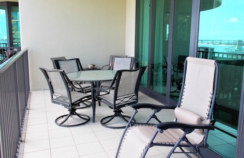 Now about the condo. SITTING ON THE DOCK OF THE BAY WATCHING THE ALABAMA TIDE ROLL AWAY. That's one way to enjoy the time you spend in our 2bedroom/2bath condo with FREE boat slip and trailer storage included. Or you can sit on the spacious 4th floor balcony and to your right view the whole bay, Perdido Pass Bridge and the Gulf, as well as the beautifully landscaped grounds of Lighthouse on the Bay. On your left is a view of the outdoor pools, and lazy river Below are the BBQ grills, picnic area, fish cleaning station and boat docks.