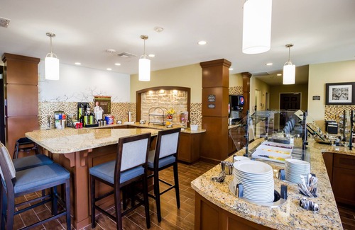 In the KITCHEN you'll find a stove, a microwave, a dishwasher, a refrigerator, cooking utensils, and dishes. Start your day with a cup of coffee, fresh from our in-suite coffee machine. In the morning, enjoy a complimentary breakfast buffet which features a variety of delicious options. You can grill up a meal in the shared BBQ area.