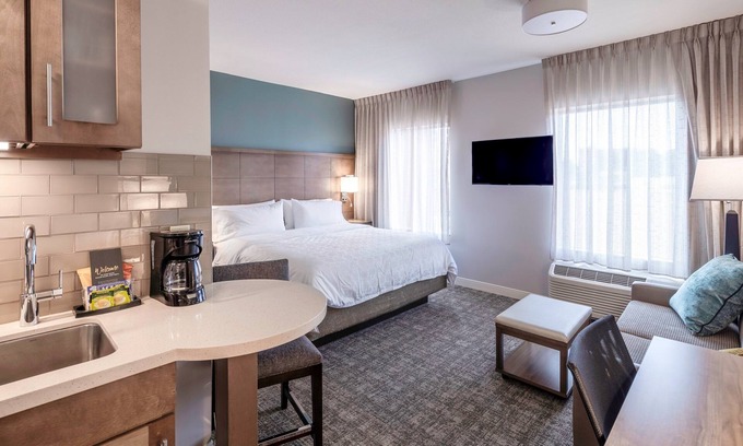 Our hearing accessible STUDIO has a King bed and a Sleeper sofa. Retreat to our air-conditioned space, curl up and enjoy your favorite shows on our flatscreen TV or watch your favorite movie with our DVD player. In-room movies are available on premium cable. You can easily connect with friends and family back home, courtesy of the complimentary Wi-Fi. Get some work done while you're away by taking advantage of the laptop-friendly space.