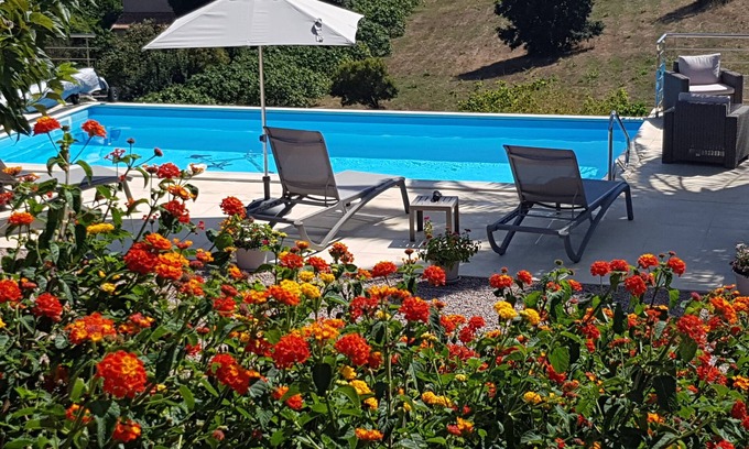 You can enjoy a spacious and shaded terrace and the 4x8m swimming pool (heated depending on the period). with 40 m2 of beach equipped with sun loungers and lounge.