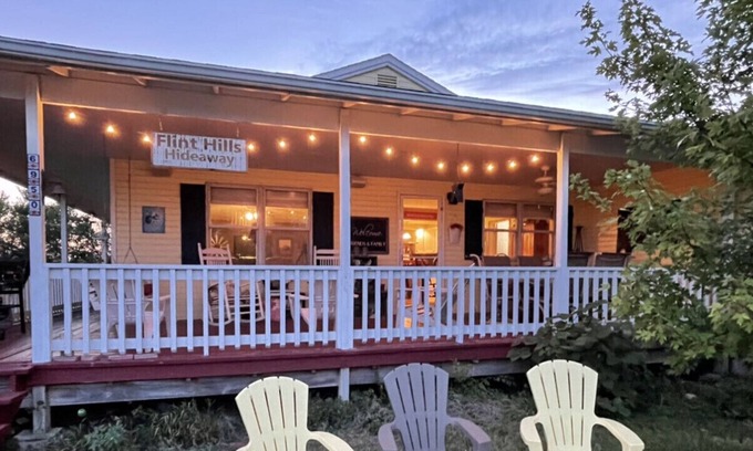The Flint Hills Hideaway is just a 10 minute drive from the Manhattan mall. As you're coming down the winding driveway, you'll notice the wrap-around front porch filled with rocking chairs and love seats and you will know this is the perfect place for your stay. This home boasts an open-concept kitchen and family room which comfortably seats over 20 people. The hideaway sleeps 15+ and is stocked with ANYTHING you could need. Fully finished basement, & private back deck with hot tub and fire pit! Great for watching the starry sky and making s’mores. There are 4 recliners and a thermostat-controlled fireplace. Lots of large windows for viewing the Flint Hills and the vast array of wildlife that ventures through the property. If the weather does not cooperate for your outdoor plans, don't worry. There are 2 closets filled with toys and games, a ping pong table, a foosball table, tons of DVDs and plenty of other activities to keep everyone entertained. This home will comfortably sleep 15, not counting air beds. Enjoy a nice one-mile walk around the neighborhood.. I loved this home and just want others to get to enjoy it as much as I do. I got married moved, and only spend a portion of my time in Manhattan now. Help me keep the memories flowing on this little 10-acre slice of Heaven where I raised my 3 boys. You will love it here! If this space is not available, check the Hideaway Lodge on VRBO. It is a smaller unit on the same property. If you pay for the property insurance, you do not have to pay the $500 damage deposit.